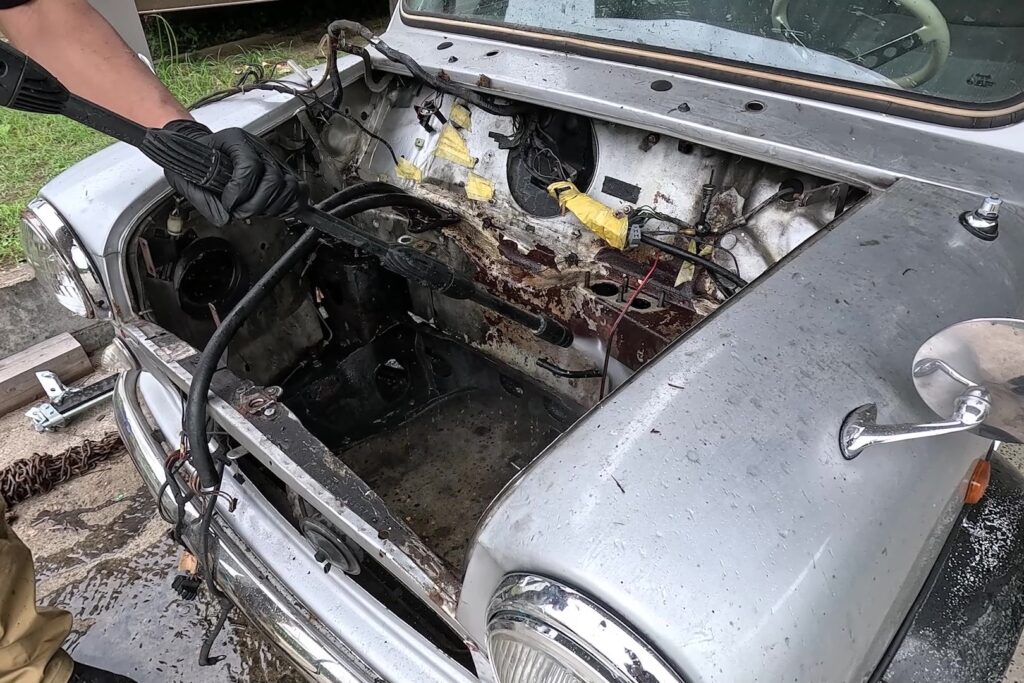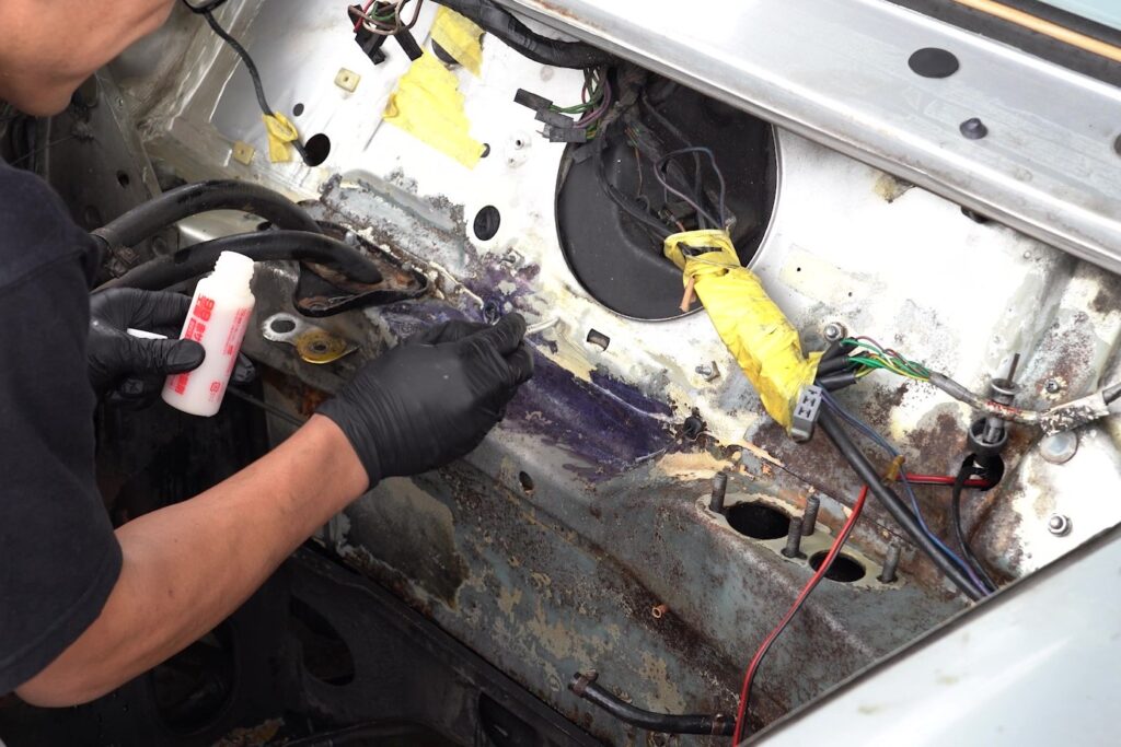 お次はさびの処理っす ワイヤーブラシを電動ドリルにつけて落としていきました