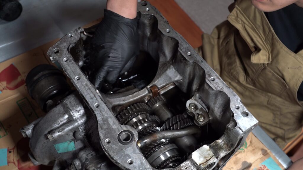 前回、ギアボックスとの分離が終わっている腰下からですね