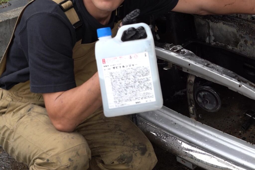 あらかた落ちたんで錆転換材を塗ろうと思ったんですけど、買ってあったのがサビトルンジャーって商品で子らは転換するけどそれより、錆の除去剤みたいなやつでした(笑)せっかくなので塗布しました