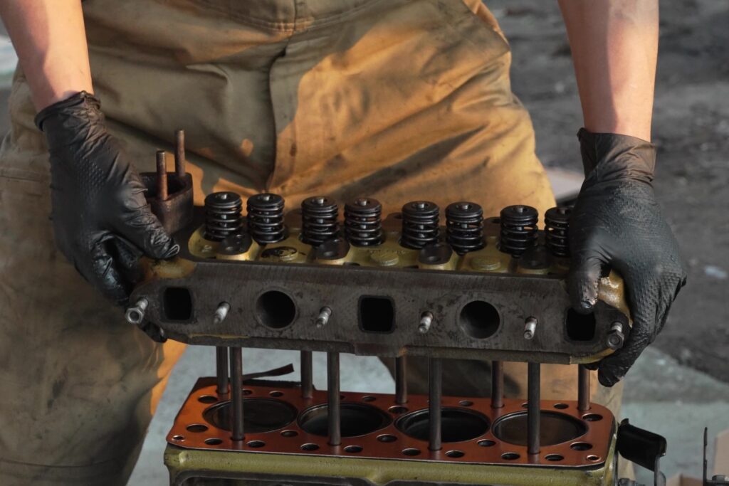 抜いてあったスタッドボルトを入れて、ヘッドを載せていきます